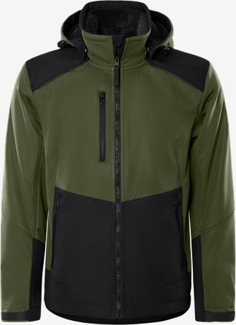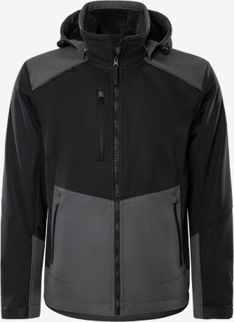 Comfortable stretch softshell jacket with pliable pile fleece lining. A soft windproof and water-repellent stretch jacket with reinforcements at exposed parts and detachable hood.
